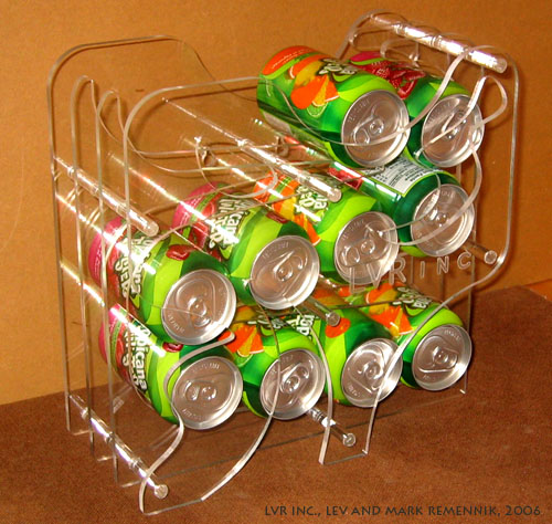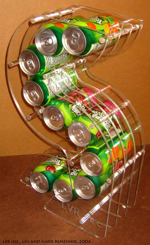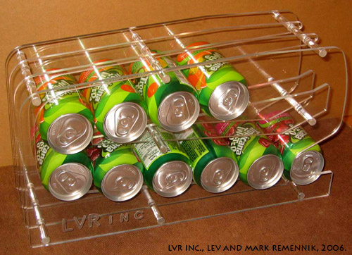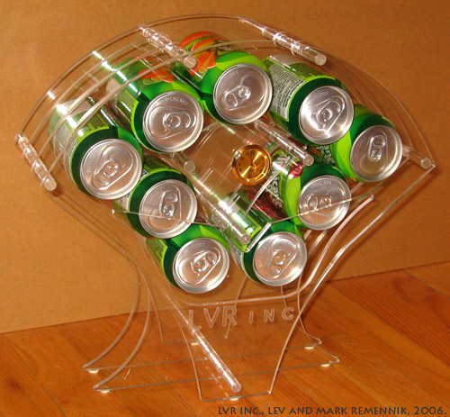 The Can Dispenser - The pop-can dispenser makes the pop-can into an attractive table accessory as well as saves space around the kitchen. The LVR inc. can dispenser brings a new meaning and form to an industrial product. (All rights reserved, Lev and Mark Remennik, LVR inc. 2006. |
