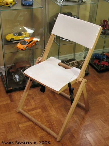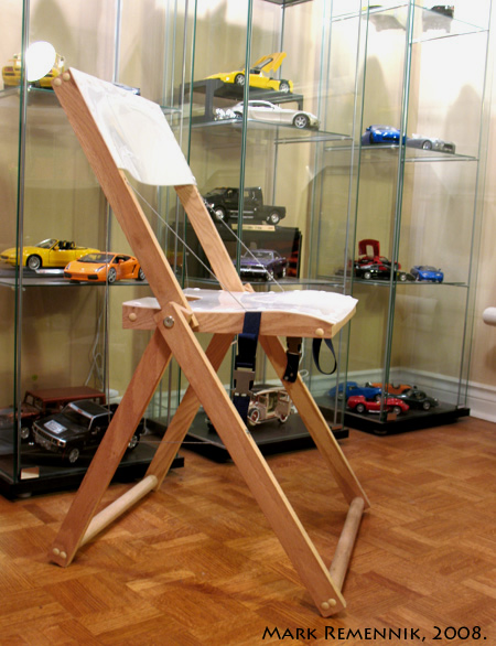 Folding Chair – This chair is an exercise in an innovative hinging and structure. The chair forms a tensile structure while unfolding, locking it in place with straps. The tensile strength of the cables is distributed among all structural members of the chair and thus enabling it to support the weight of a person. This chair folds into nearly half it’s height and a negligible 2 inches thick. This is thanks to the cables’ ability to virtually vanish when not in use. |