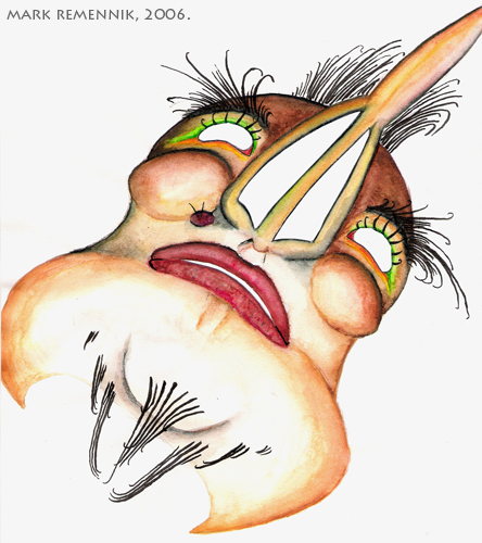 Mask Design - Watercolour, fine liner and pencil crayons.