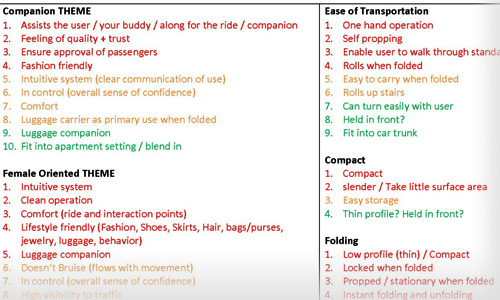 – The discovery stage of this project revealed the essential emotive (1st and 2nd image) and technical success criteria that would guide the concept development and prototyping stages. From insights in the Discovery phase arose requirements, such as the one motion folding bike, folding within the bicycle’s own space, disguising & functioning as luggage, keeping the user clean, companionship between user and machine and many more. This was interpreted into a Design Brief.